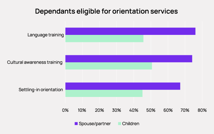 Once the move is underway, orientation services play a significant role in helping families settle in. Our International Relocation Benefits Survey shows that almost two-thirds of companies offer such services to assignees. However, cultural and language training are provided less frequently than core support like tax briefings or home search, despite their contribution to long-term adaptation challenges.