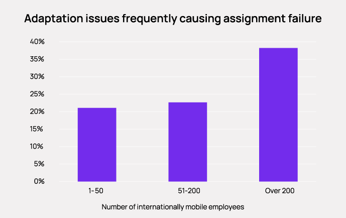 These challenges become significantly more acute in organisations with larger expatriate populations. As seen in our latest Managing Mobility Survey, those managing over 200 internationally mobile employees are nearly twice as likely to report adaptation issues derailing assignments compared to those managing up to 50. With greater scale comes greater risk, as well as complexity.
