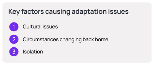 There are a range of factors leading to difficulties adapting, with each having a different impact, but cultural issues stand out as the most common factor.